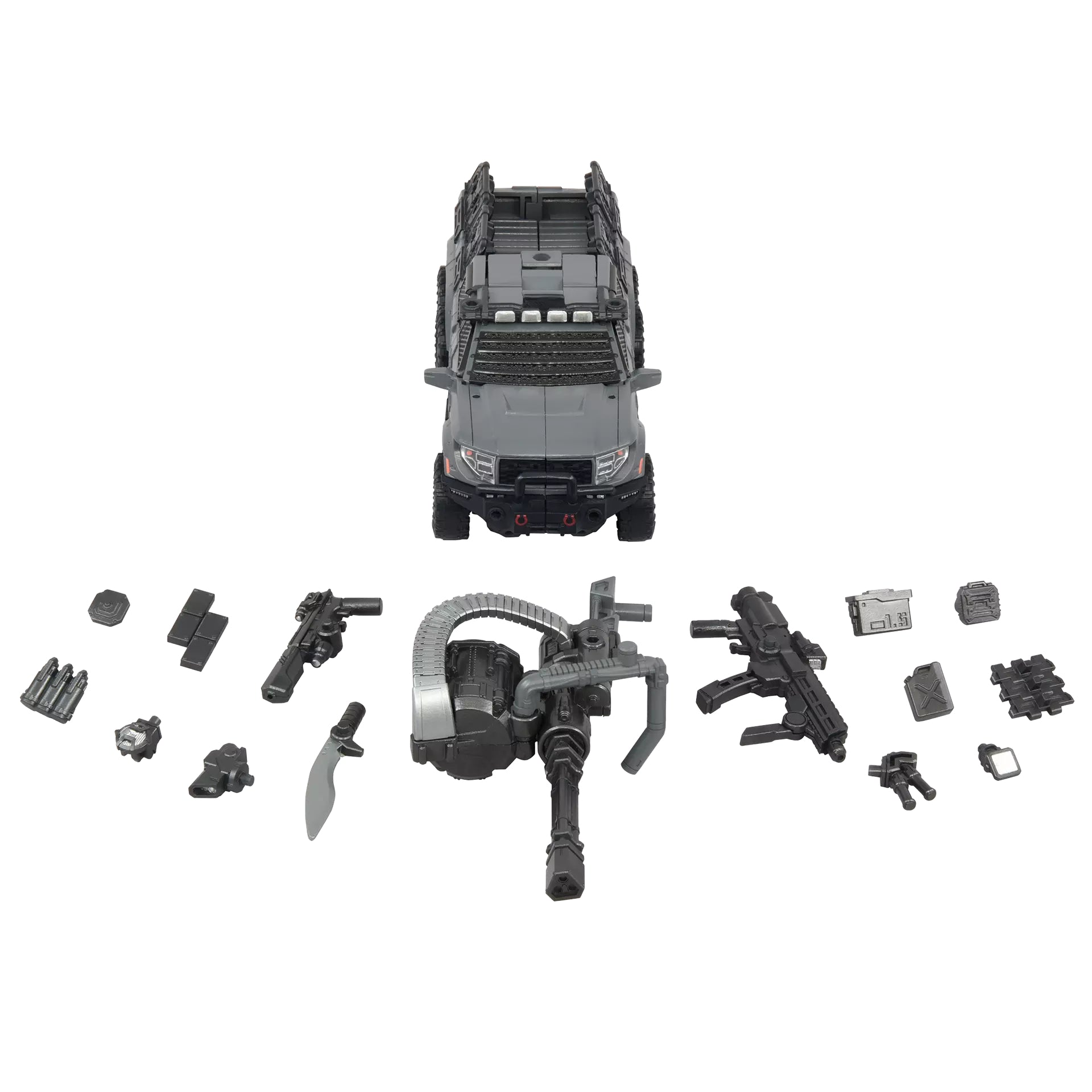 Each part of both vehicle mode and robot mode has a large number of 3mm joints and 5mm joints, and you can play with the included accessory parts. You can choose weapons and equipment according to the mission and situation. Accessory parts include weapon parts such as Gatling, submachine gun, handgun, and Kukri knife, as well as equipment parts such as grenades, armorboxes, jerrycans, toolboxes, magnet bombs, track armor, reactive armor, sensors, smoke dischargers, panel antennas, and searchlights.