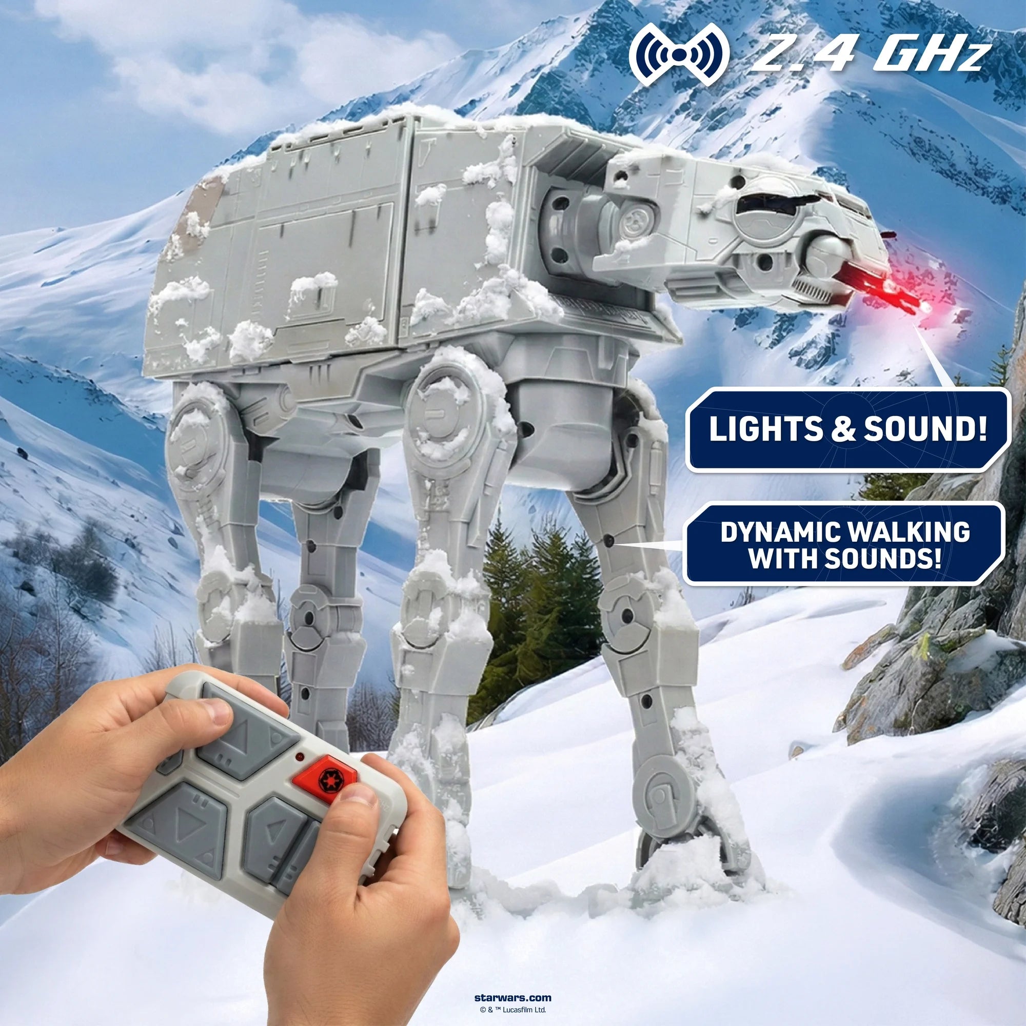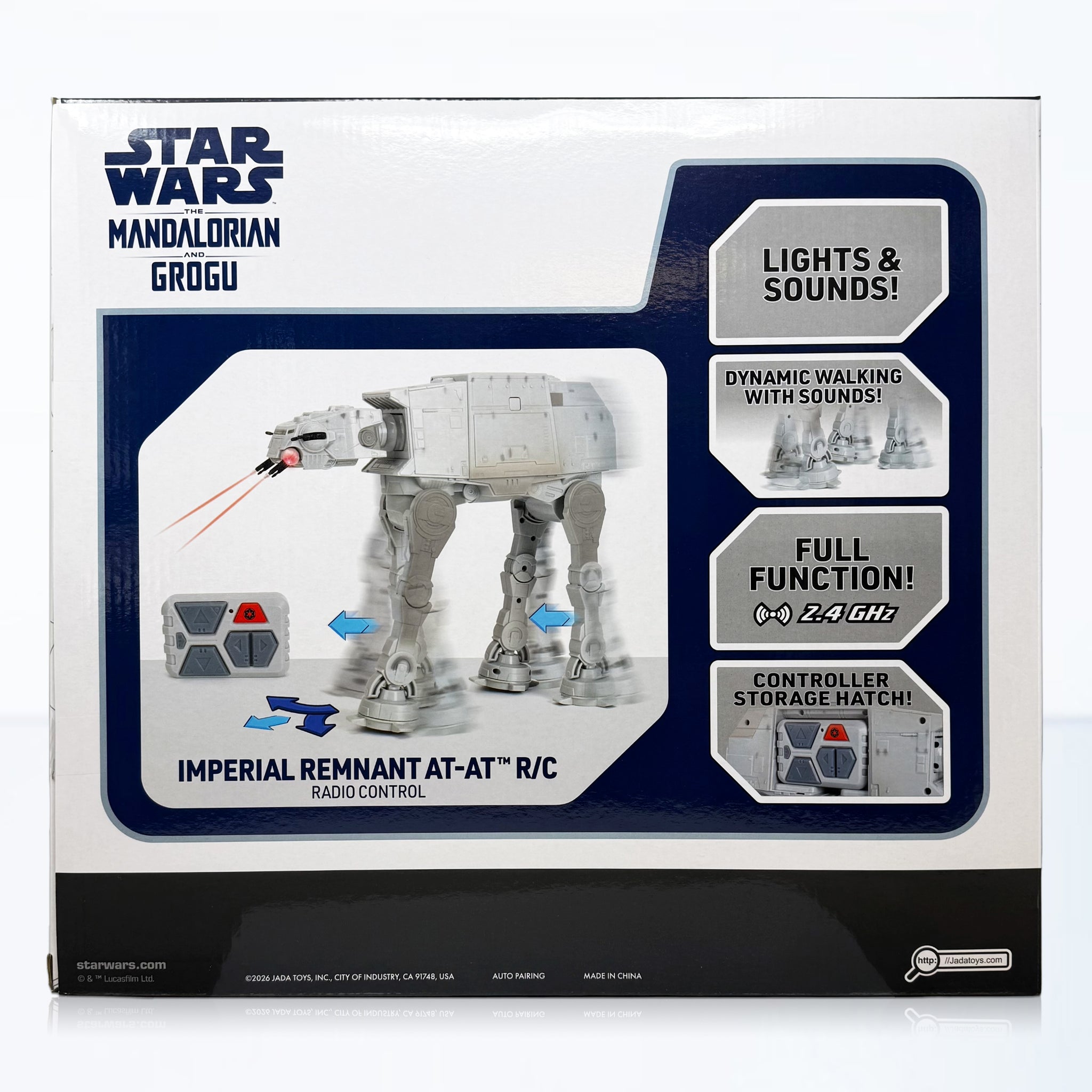 OT-014-455Take command of your own STAR WARS™ Imperial Remnant AT-AT R/C from Jada Toys! Standing 13 inches tall and packed with features, this remote-controlled All Terrain Armored Transport brings STAR WARS battles to life like never before. Equipped with a fully actuated 4-leg walking mechanism, this AT-AT mimics the iconic march from the movies, complete with synchronized sound effects for maximum realism.