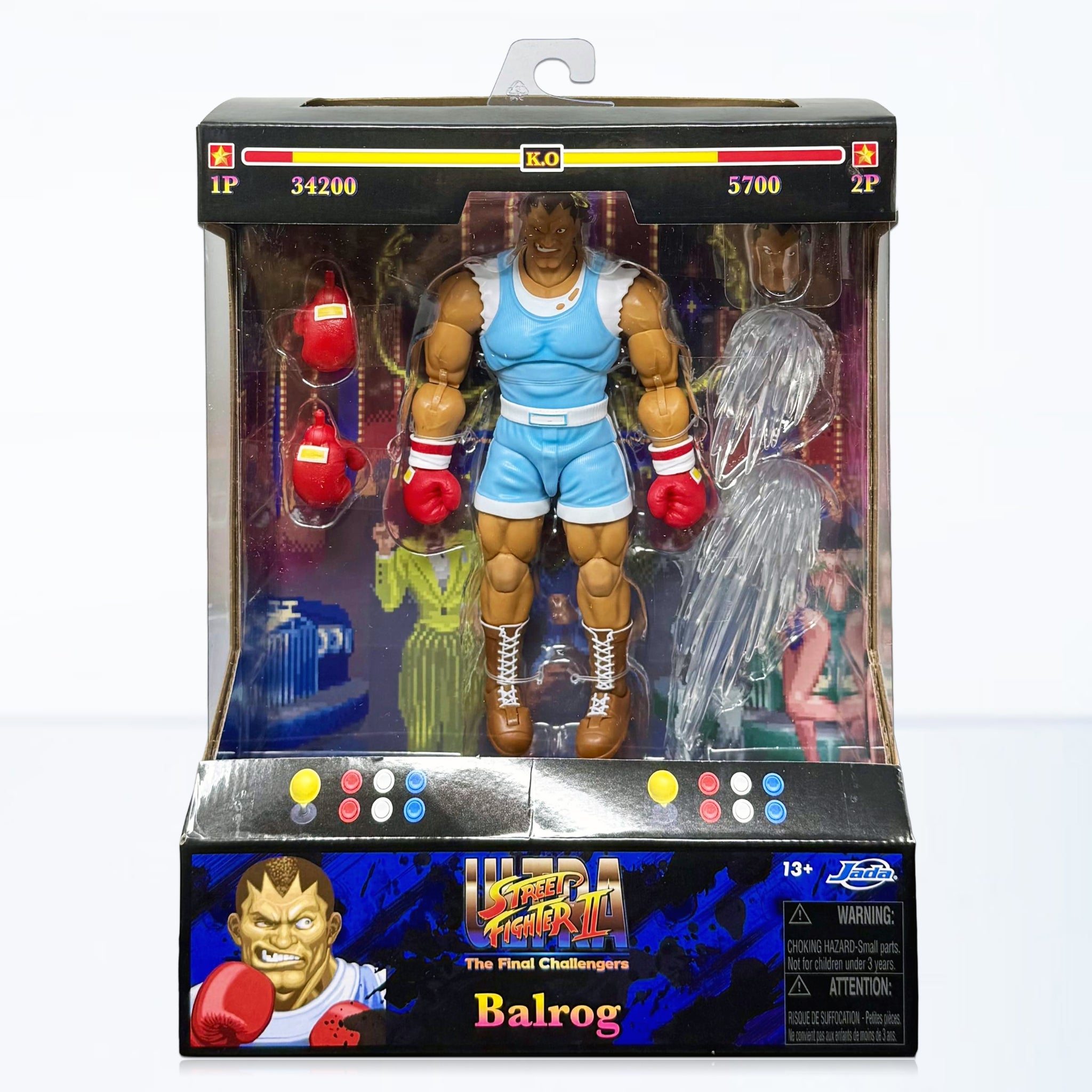 OT-014-429Step into the ring with the Ultra Street Fighter II Balrog 1:12 Scale Action Figure by Jada Toys! Known for his raw power, ruthless aggression, and devastating punches, Balrog is one of the most feared fighters in the Street Fighter series. Once a heavyweight boxing champion, Balrog was banned from the sport for his violent fighting style only to be recruited by Shadaloo as M. Bison’s brutal enforcer.