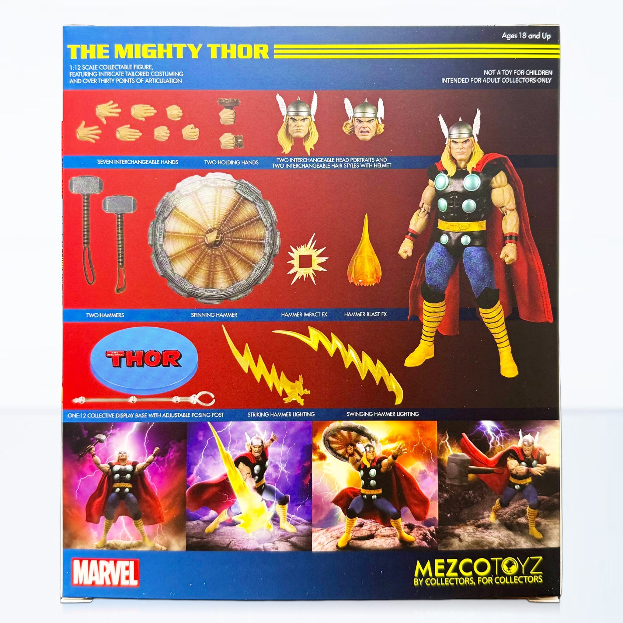 Feel the power of Asgard as The Mighty Thor storms into the One:12 Collective lineup! The One:12 Collective The Mighty Thor features two interchangeable head portraits and seven interchangeable hands for recreating dynamic battle scenes.
