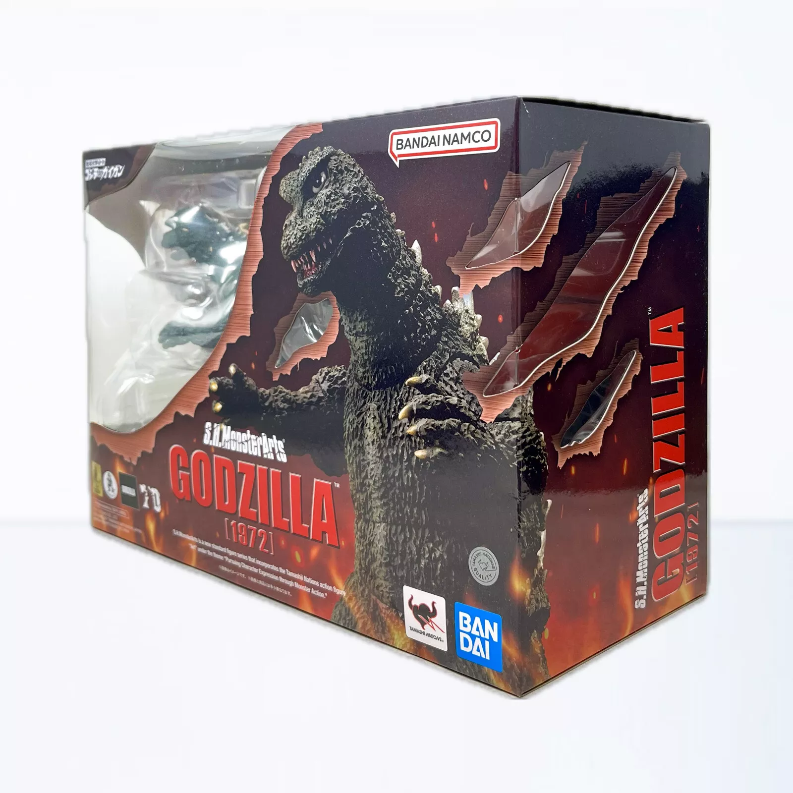 BA-01-10106GODZILLA (1972) from "Earth Destruction Directive: Godzilla vs. Gigan" joins S.H.Monsterarts with sculpting and coloring overseen by kaiju-master Yuji Sakai! All new design and colors replicate the appearance of Godzilla, with optional damage from the epic battle against Gigan. Be sure to add this Godzilla figure to your S.H.MonsterArts collection!