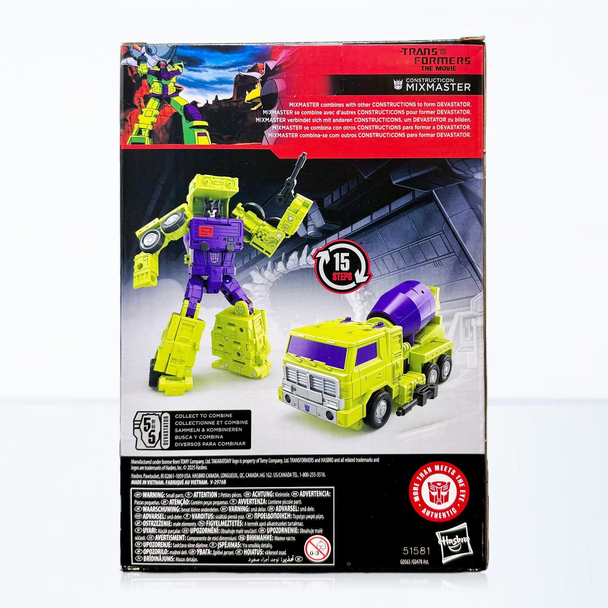 - THE TRANSFORMERS: THE MOVIE MIXMASTER: This Transformers Studio Series Constructicon Mixmaster figure features movie-inspired deco and details