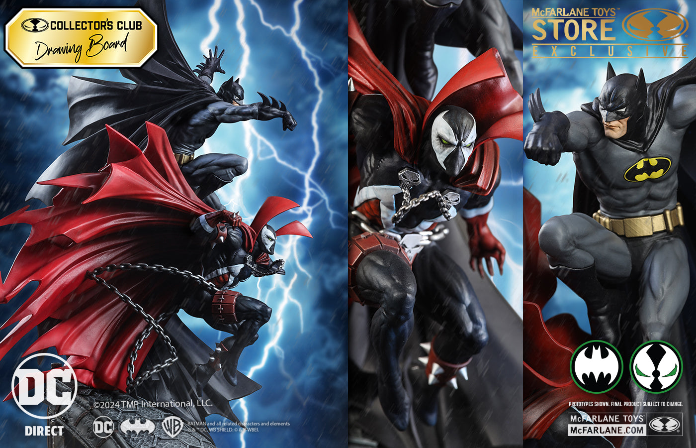 EX-CC-40086In honor of the 30th Anniversary of McFarlane Toys comes a new resin statue design by Todd McFarlane from his cover art on the iconic 1994 best-selling Spawn Batman crossover comic written by comic legend Frank Miller.