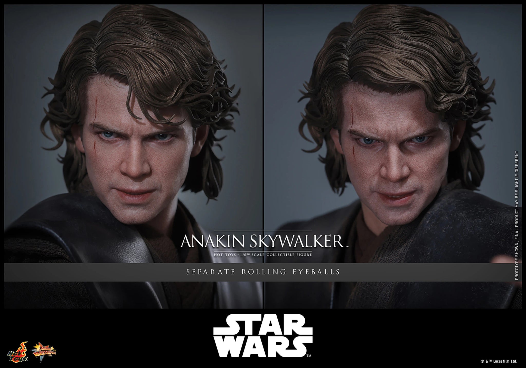 Sideshow and Hot Toys are honored to present the Anakin Skywalker™ Sixth Scale Collectible Figure, a stunning tribute to Hayden Christensen’s portrayal of the character. Crafted with exacting detail, the Star Wars action figure features a newly developed head sculpt with two pairs of interchangeable separate rolling eyeballs and two styles of interchangeable fringe sculpts to reflect Anakin’s evolving battle-worn expression. For the first time, collectors can switch between lifelike blue iris eyeballs and Sith yellow iris eyeballs to highlight his dramatic shift toward the dark side.