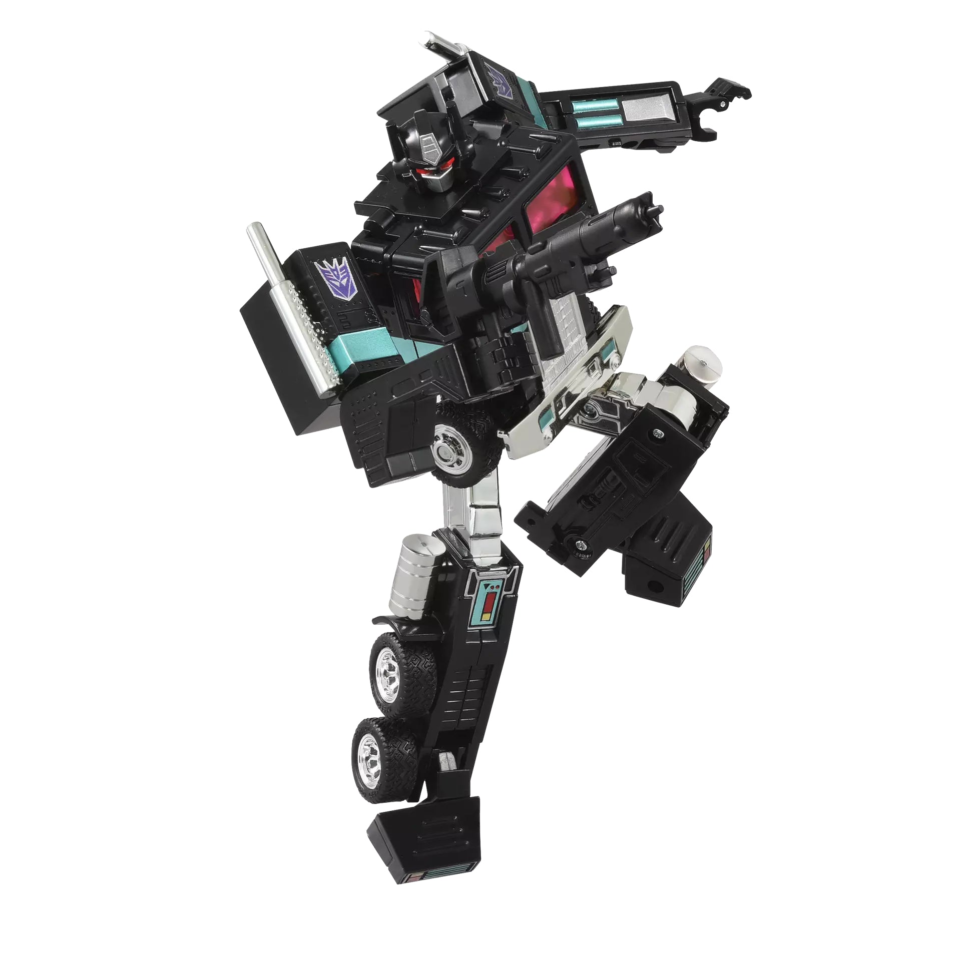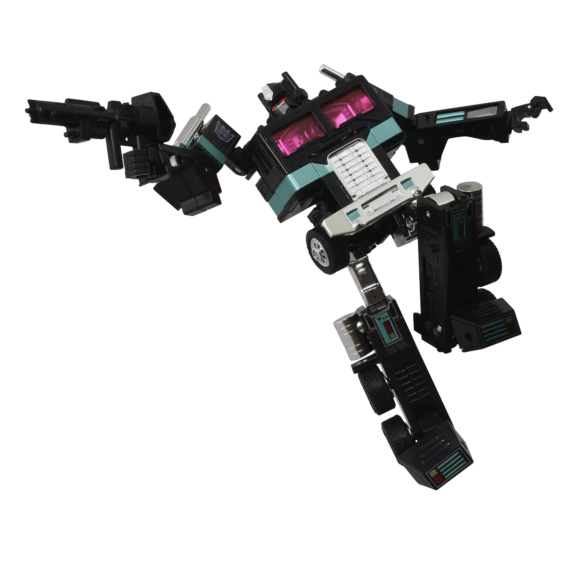 Decepticons join the Missing Link series in a retro form that imagines what they would have looked like had they been released with the Gen 1 line. C-01N Nemesis Prime is based on the C-01 Optimus Prime with a sleek black deco.