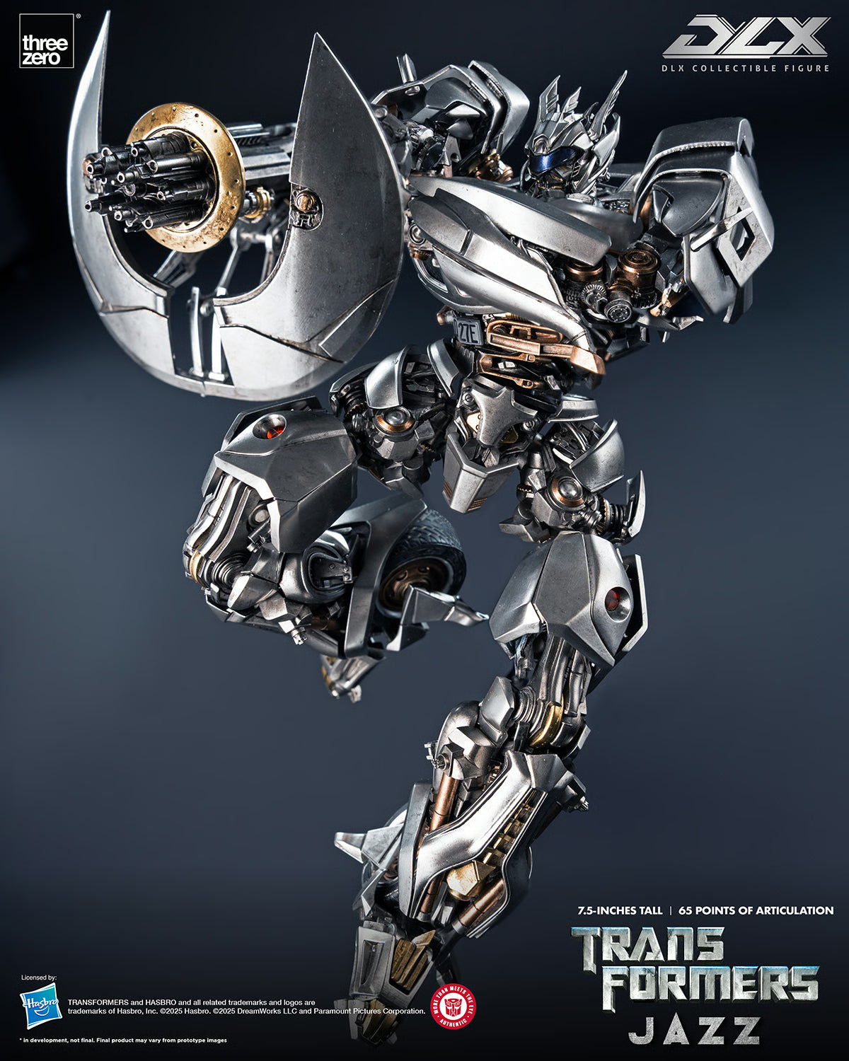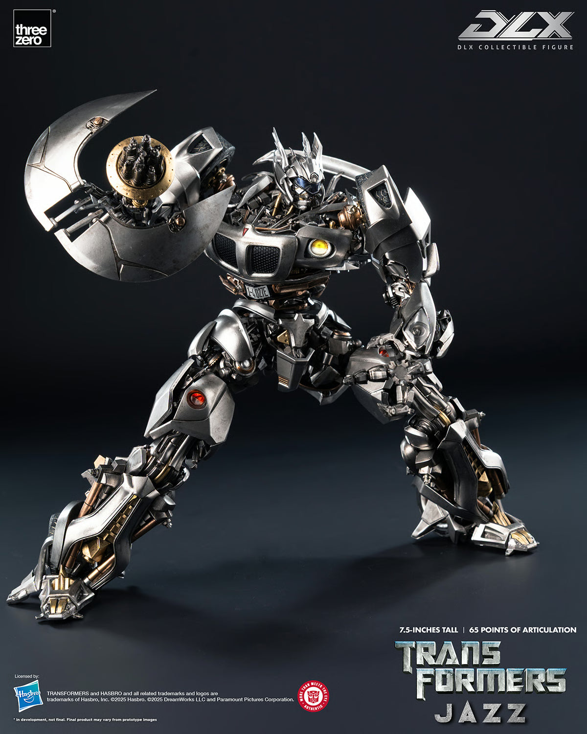 From the live-action film Transformers (2007), Jazz – Optimus Prime’s second-in-command – makes his debut in the threezero DLX series! Meticulously crafted by threezero’s new R&D team, this figure stays true to the movie’s design while adding excellent tactile quality and high playability to the legendary character.