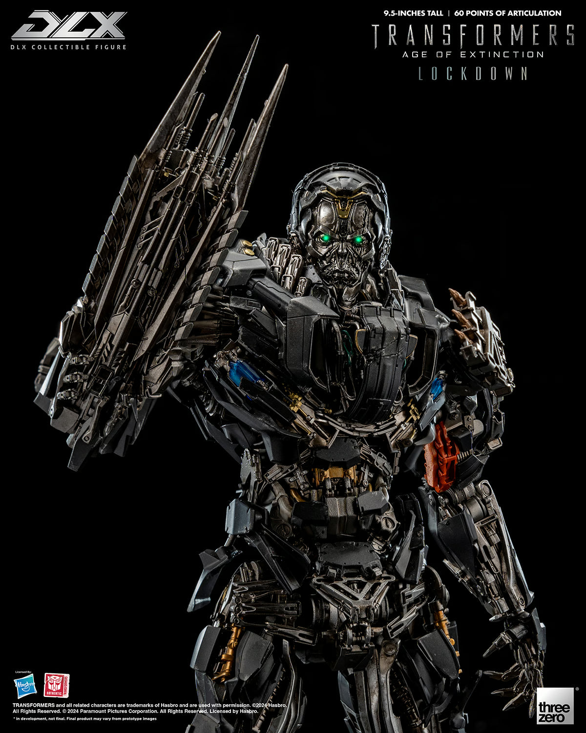 threezero is proud to present the Transformers collectible figure of the infamous bounty hunter and hired assassin from the movie Transformers: Age of Extinction, DLX Lockdown!