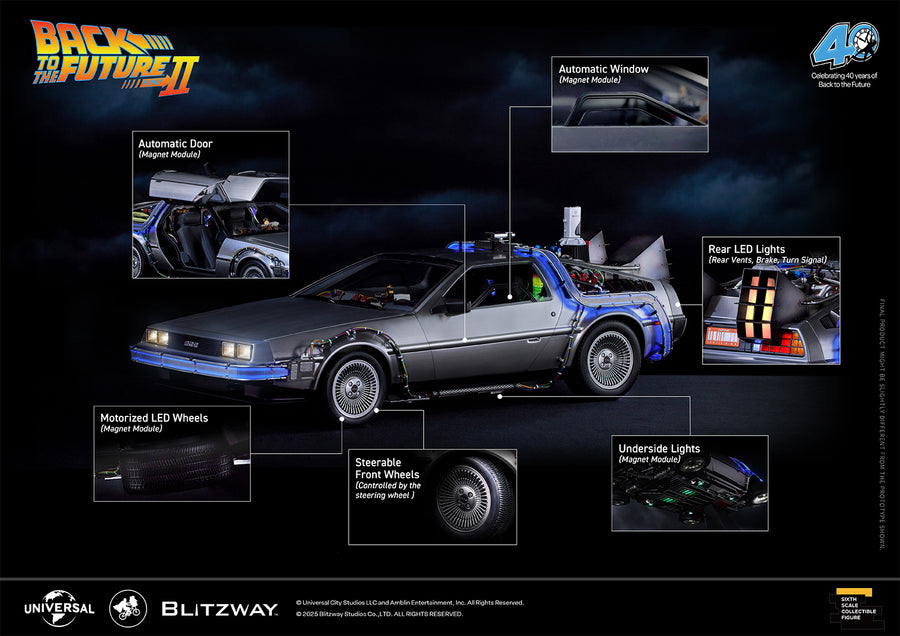 With 8 Key Features, BLITZWAY invites fans to relive the excitement of Back to the Future Part II, capturing the nostalgia and wonder of the Time Machine as if it had traveled 40 years to arrive before you today.