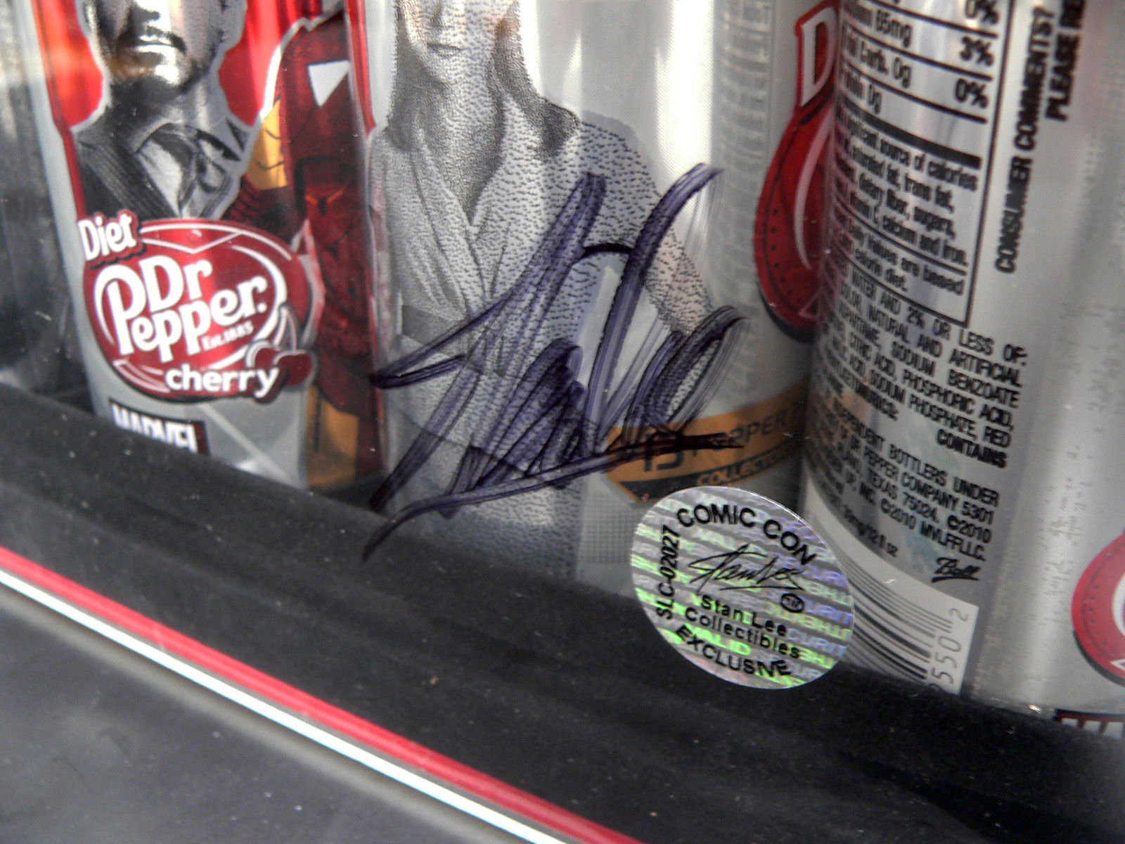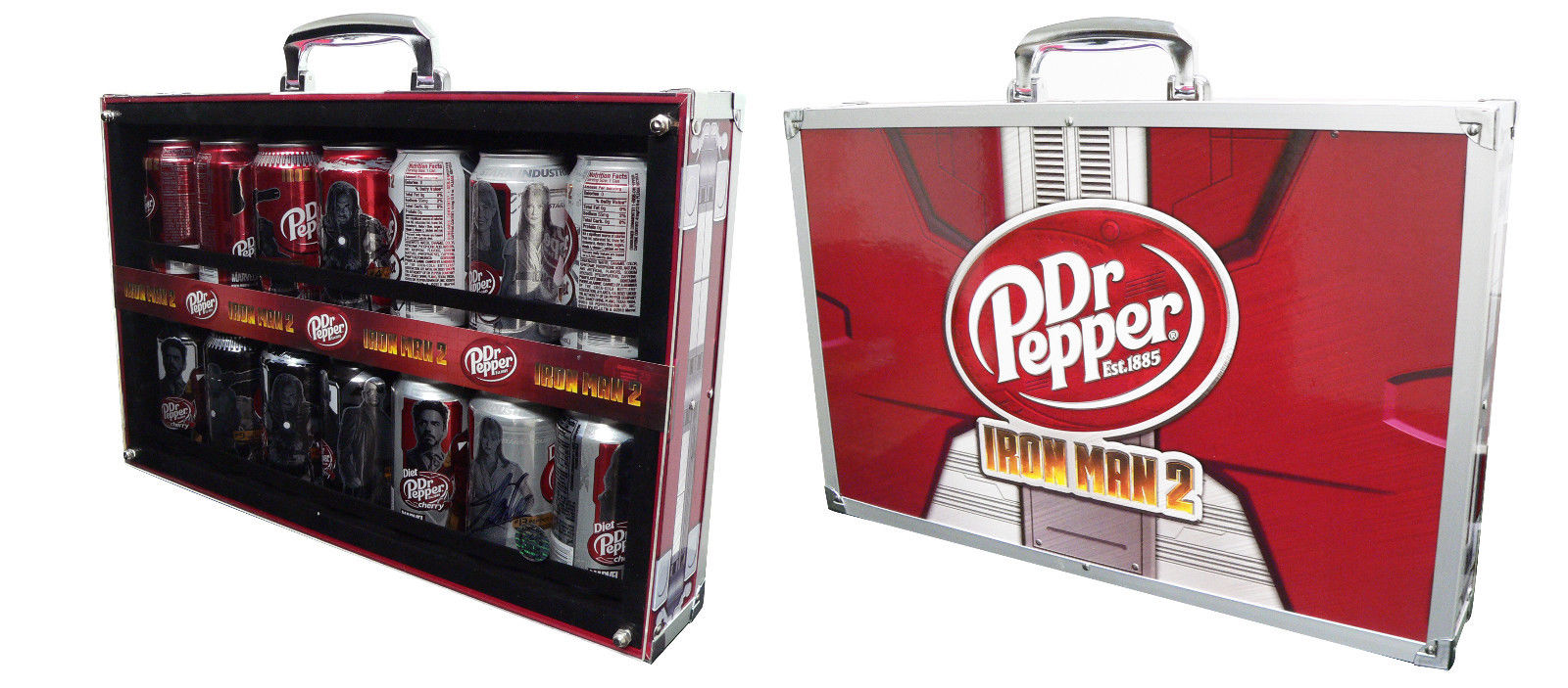 Dr. Pepper Iron Man 2 Promotion Can set of 14 in Suitcase Signed by Stan Lee