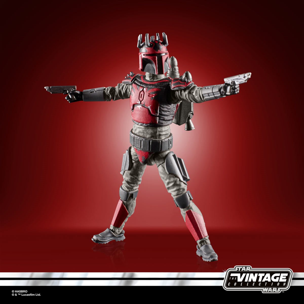 SW-01-10101Maul's Mandalorians modify their armor to reflect allegiance to the Dark Lord. These super commandos wear red and black, and some even fashion horns atop their helmets, to resemble their Nightbrother leader.