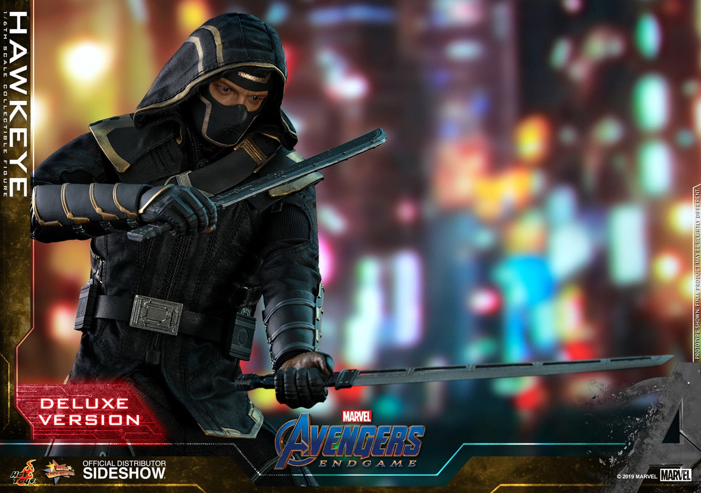 Expertly crafted based on Jeremy Renner’s appearance as Hawkeye/Clint Barton in Avengers: Endgame with astonishing likeness, the highly-detailed collectible figure features a newly developed head sculpt, meticulously tailored costume, assorted weapons and accessories including bow and arrows, dagger, shurikens and a movie-themed figure stand with an interchangeable graphic card. The highlight of this Deluxe Version is Hawkeye’s Alternate Version outfit skillfully translated on this Sixth Scale Collectible Figure which exclusively includes an array of interchangeable parts such as a newly developed masked head sculpt, vest, arm guards, katana with sheath and a number of gloved hands for fans to display the figure in variety of action poses!