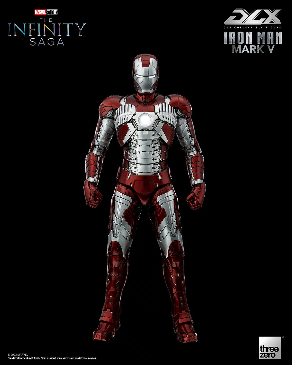 OT-014-367Sideshow, threezero and Marvel Studios are excited to present the DLX Iron Man Mark 5 Collectible Figure as the next figure in the Marvel collectibles DLX series. The Mark 5 armor resonates in a shimmering red and silver, with a multi-layer metallic coating process applied to accurately replicate the design of Tony Stark’s suit as seen in Marvel Studios’ Iron Man 2. The figure pays homage to the memorable scene where Tony Stark quickly equips the stylish Iron Man Mark 5 armor from the Emergency Suitcase in the heat of battle.